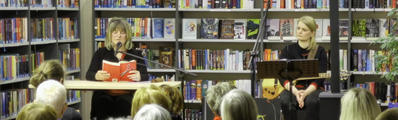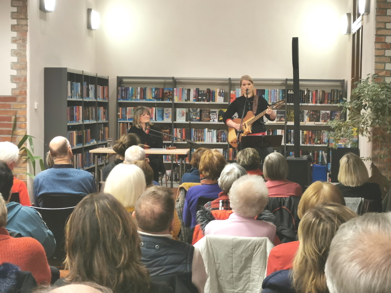 Lesung Carmen Gauger (aus dem Buch „Schwesternschere“) mit Musik von Nora Gauger in Damgarten in der Bibliothek am 21.1.2023, Fotos © Florian Hellweg.