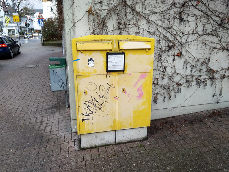 Foto eines Briefkastens in Bad Honnef, POST, Bahnhofstraße, Rückseite des Gebäudes aber hier, 2.2.2023, von Klaus Jans.