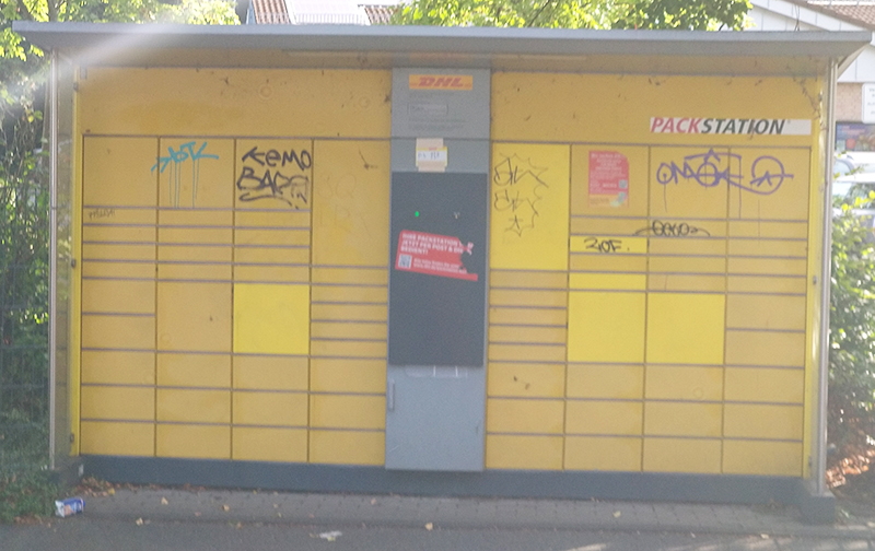 Post | Deutsche Post | Deutsche Post AG | DHL | Brief | Maxibrief | Postkarte | Päckchen, hier: PAKET | wegen der Laufnummer | Packstation | Briefträger | Posse | Glosse | Ironie | Zustellung | Nicht-Zustellung | Lieferwege | Lieferumwege | Beförderungsprobleme | Rücksendung | Postfiliale | Postshop | Postkarte | Porto | ankommen | nicht ankommen | Umwege | QR-Code zum Öffnen der Packstation | Humor | Satire | Solingen | Königswinter (bei Bonn) | Griesheim (bei Darmstadt) | Kirn (Landkreis Bad Kreuznach, Rheinland-Pfalz) | Walter Scheel | gelber Wagen | Wupperhofer | Gesangverein | DP | Bundesnetzagentur (BNA) | Postnovelle | Brief-Laufzeiten-Verlangsamungs-Postgesetz | Laufzeiten | Abwege | Fehlläufe | Geduld | E-Postbrief | E-POST Brief | „Regulierungsbehörde für Telekommunikation und Post“ (RegTp) | Verweildauer | Porto | Frankierung | Adressierung | korrekt | nicht korrekt | Briefkasten | Briefkasteneinwurfschlitz | Schlitzhöhe | Schlitzbreite |
